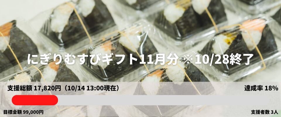 「にぎりむすび」の栄養満点の食事を、地域の子ども団体を通じて子どもたちに3食分お届けして、その証明となるオリジナルポストカードを郵送します。